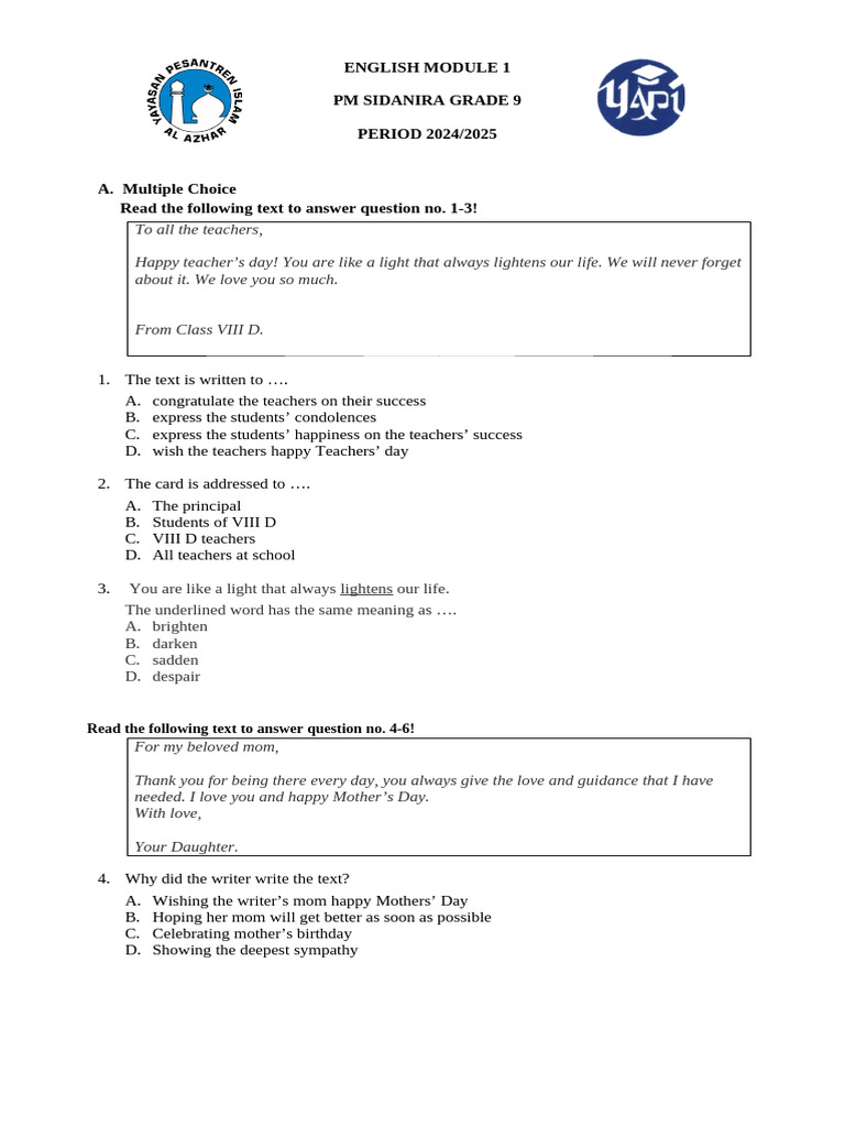 Module 2 Mock Exam Sample PDF | PDF | English Language | Grammatical Tense