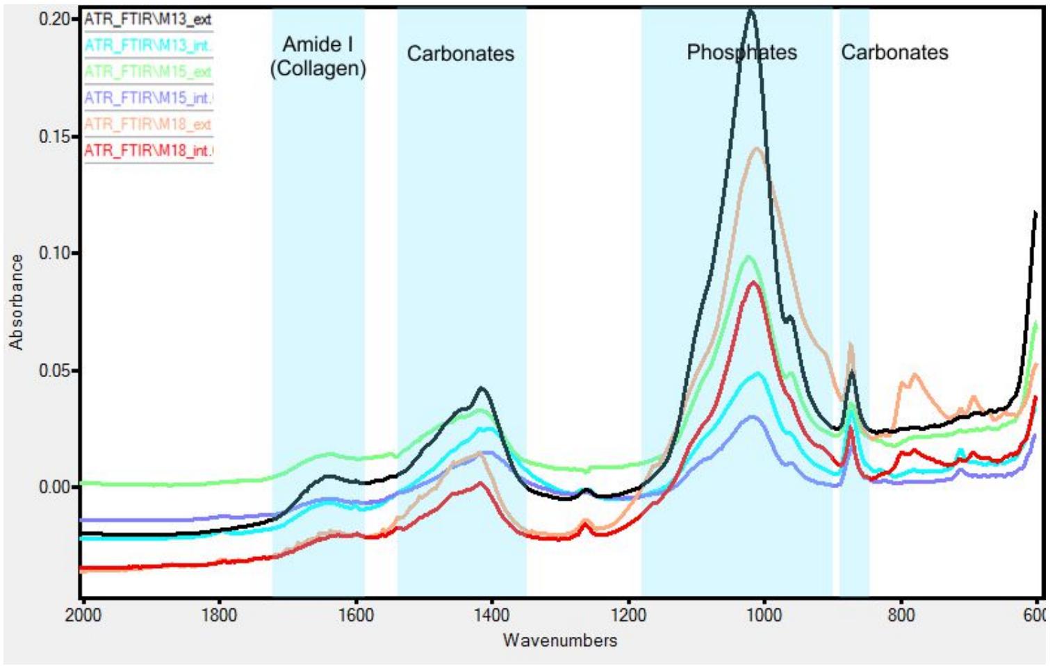Atr-ftir spectra of the outer (ext) and inner (int) surface