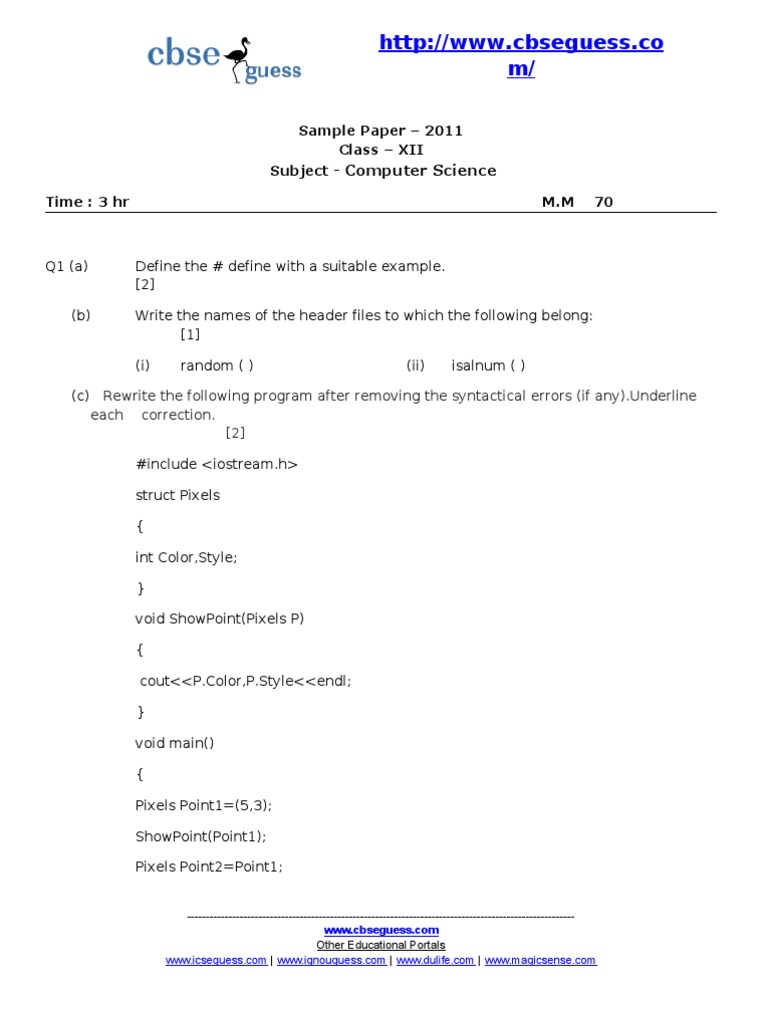 Computer Science Engineering Sample Papers: Advertisement | PDF ...