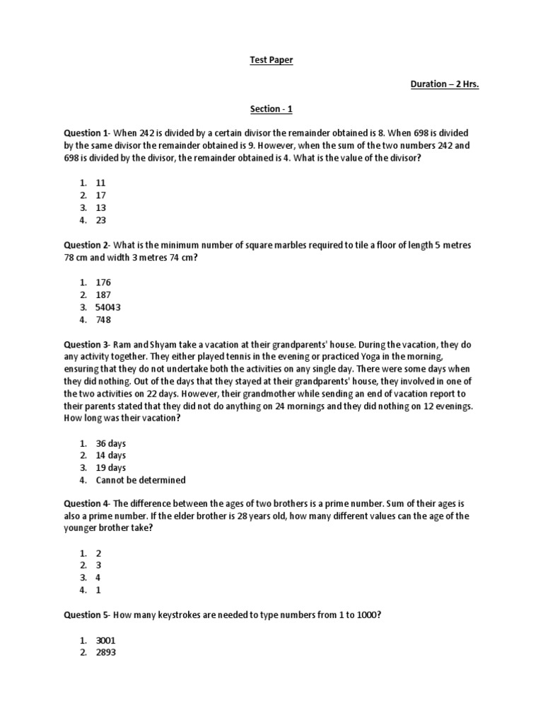 Sample Test Paper | PDF