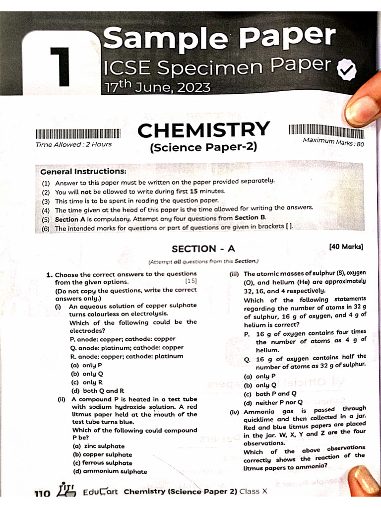 Chemistry Sample - Paper 2024 | PDF