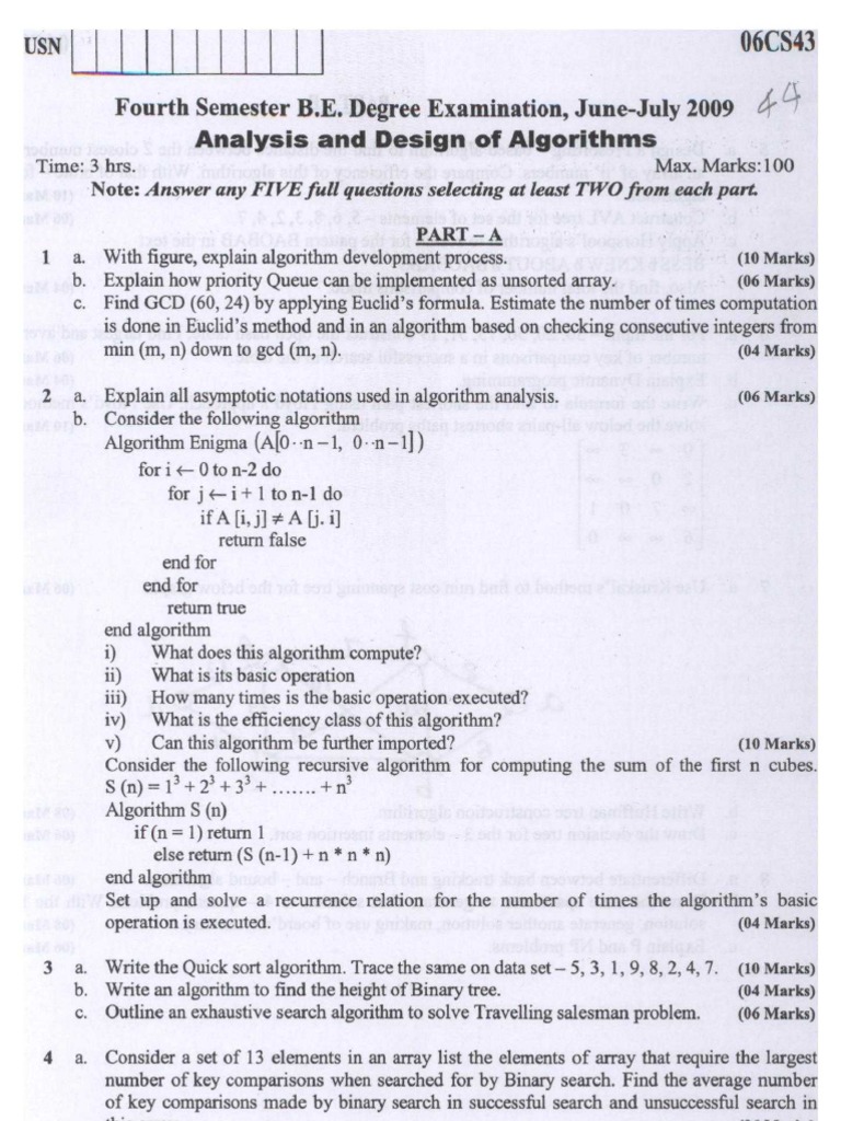Analysis and Design of Algorithm Paper 3 | PDF | Algorithms | Array ...