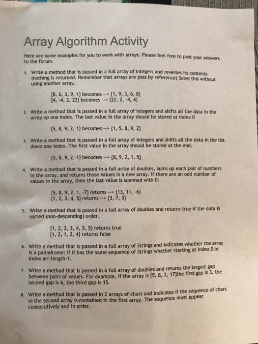 Solved Array Algorithm Activity Here are some examples for | Chegg.com