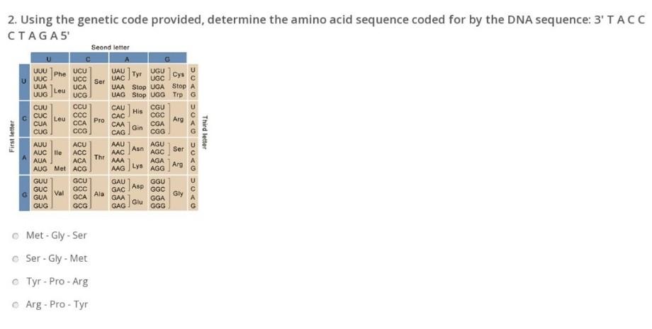 Solved 2. Using the genetic code provided, determine the | Chegg.com