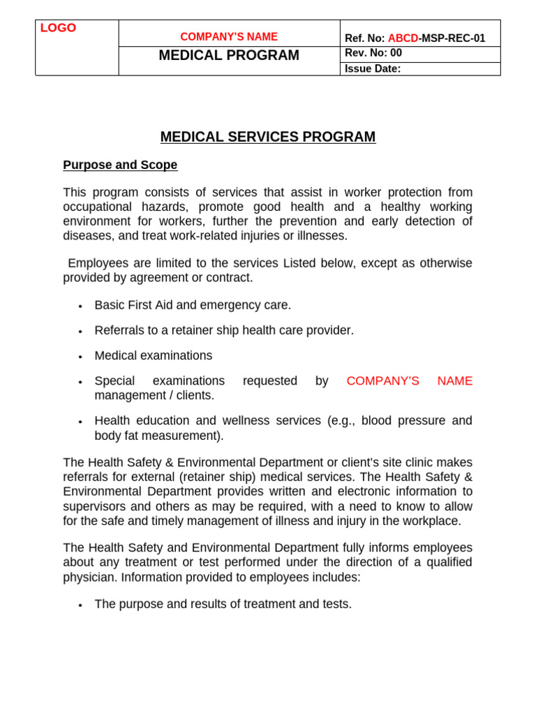 Health and Safety Programs - Templates and Samples | PDF | Occupational ...