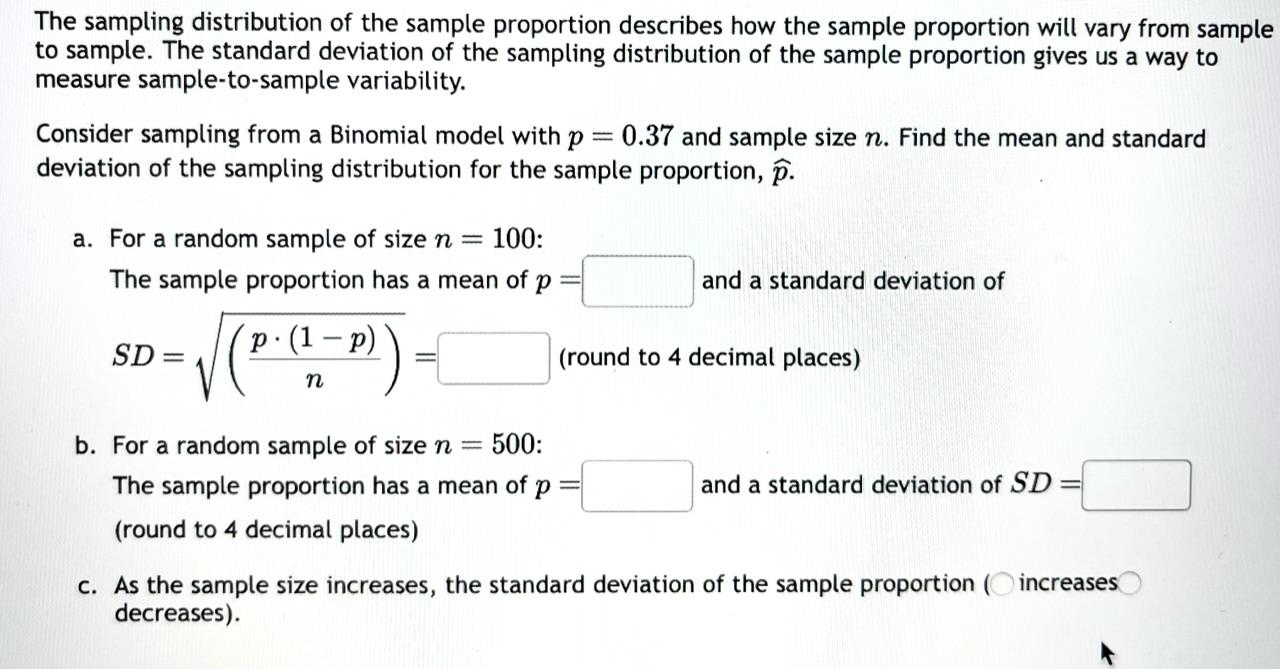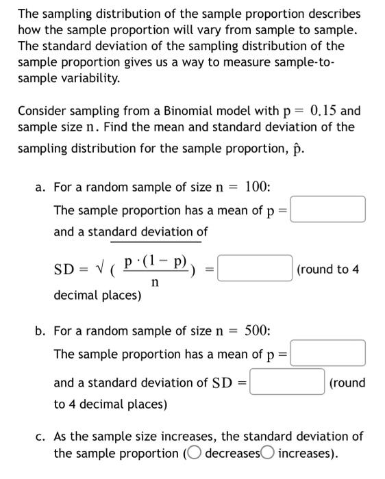Solved The sampling distribution of the sample proportion | Chegg.com