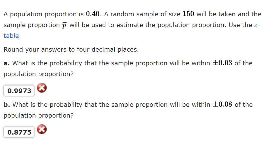 Solved A population proportion is 0.40 . A random sample of | Chegg.com