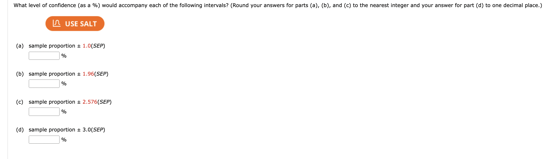 Solved (a) sample proportion ±1.0(SEP) % (b) sample | Chegg.com