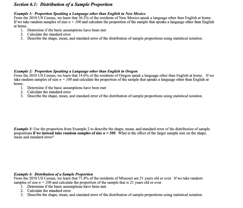 Solved Section 6.1: Distribution of a Sample Proportion | Chegg.com