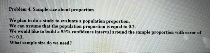 Solved Problem 4. Sample size about proportion We plan to do | Chegg.com