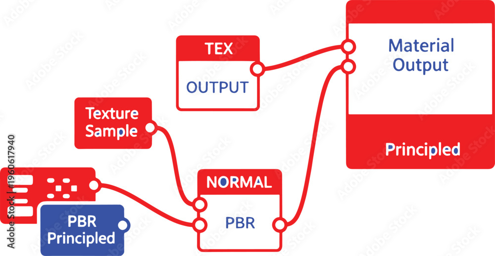 Red and blue diagram of a output node connected to texture sample and P ...