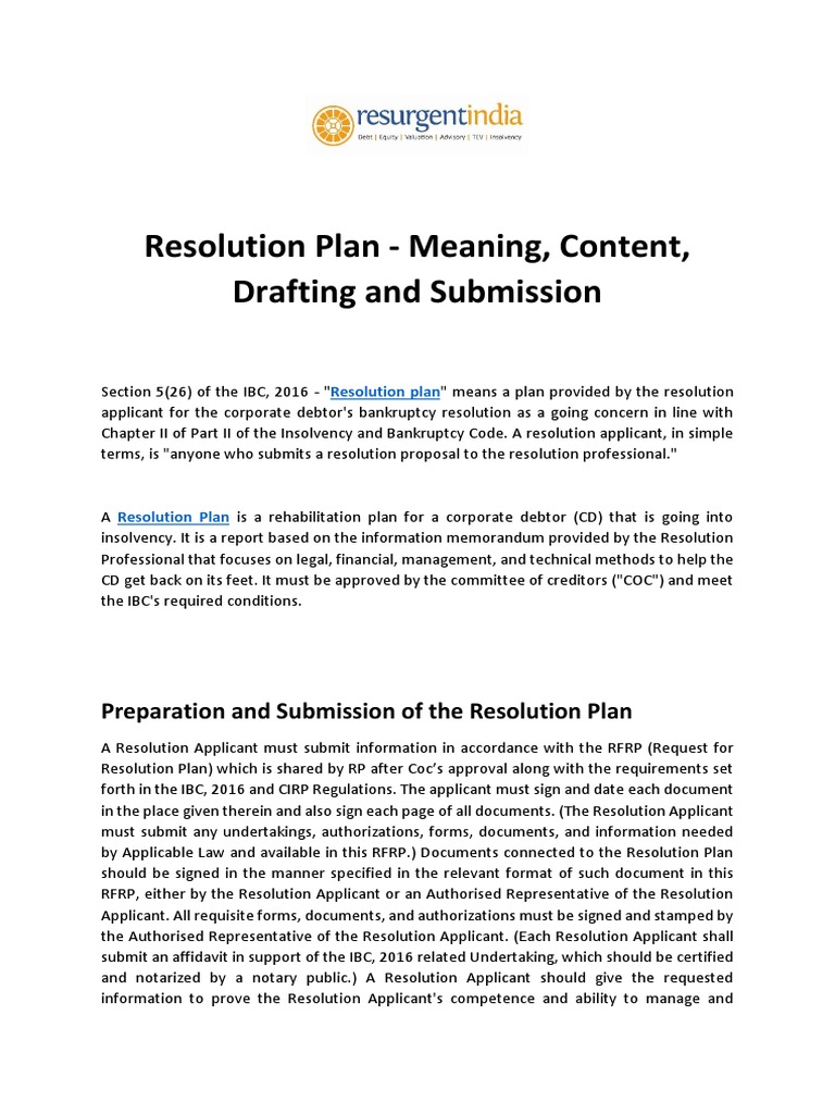 Resolution Plan - Meaning, Content, Drafting and Submission | PDF ...
