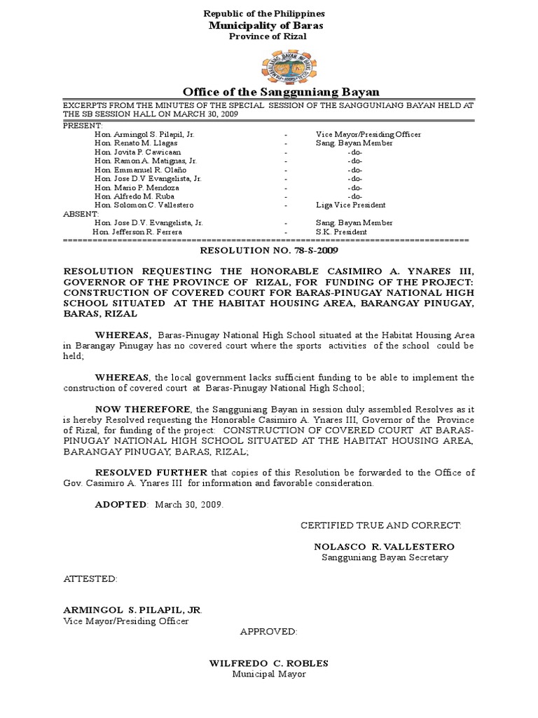 Barangay Resolution Format | PDF