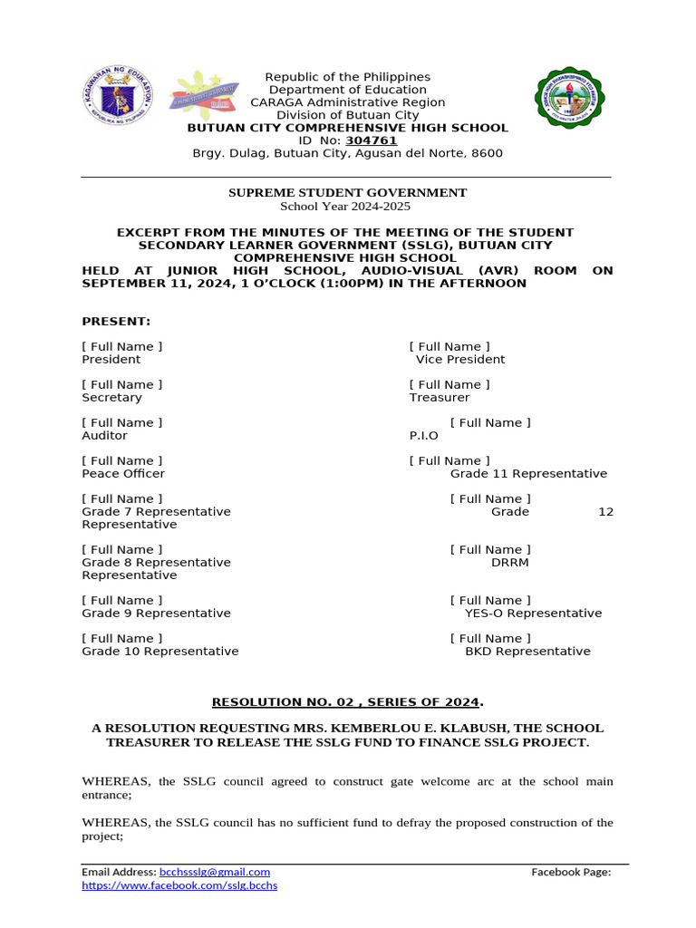 SSLG Resolution Sample For SSLG Project | PDF