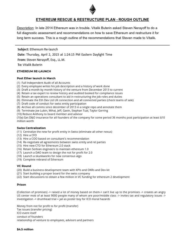 Ethereum Rescue & Restructure Plan | PDF | Business