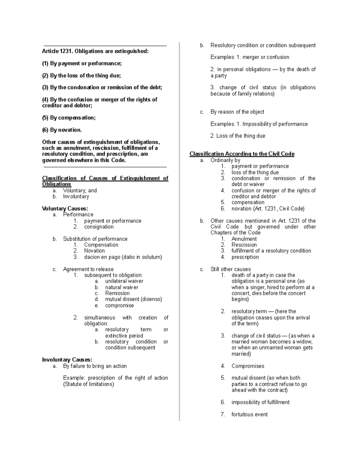 Oblicon Reviewer - Lecture Notes on Extinguishment of Obligations - Studocu