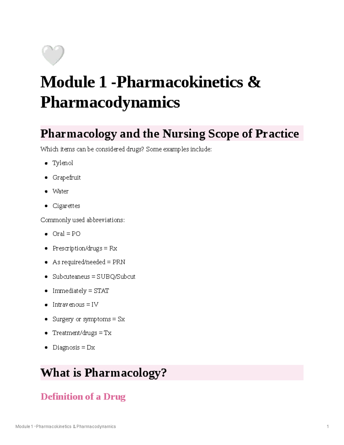 Pharm 101: Module 1 Pharmacodynamics & Nursing Practice Notes - Studocu
