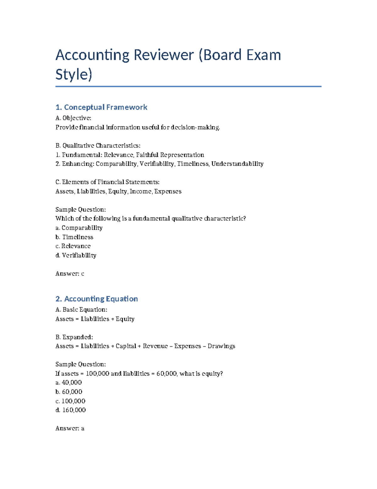Accounting Reviewer (Board Exam Style): Key Concepts & Sample Qs - Studocu