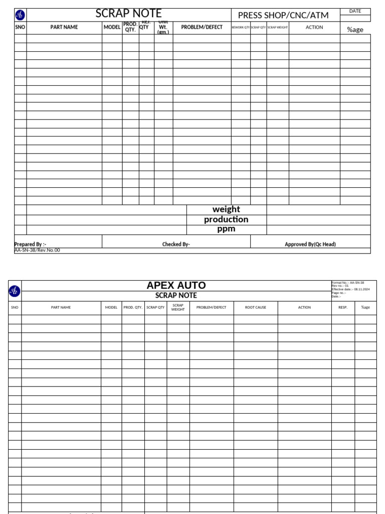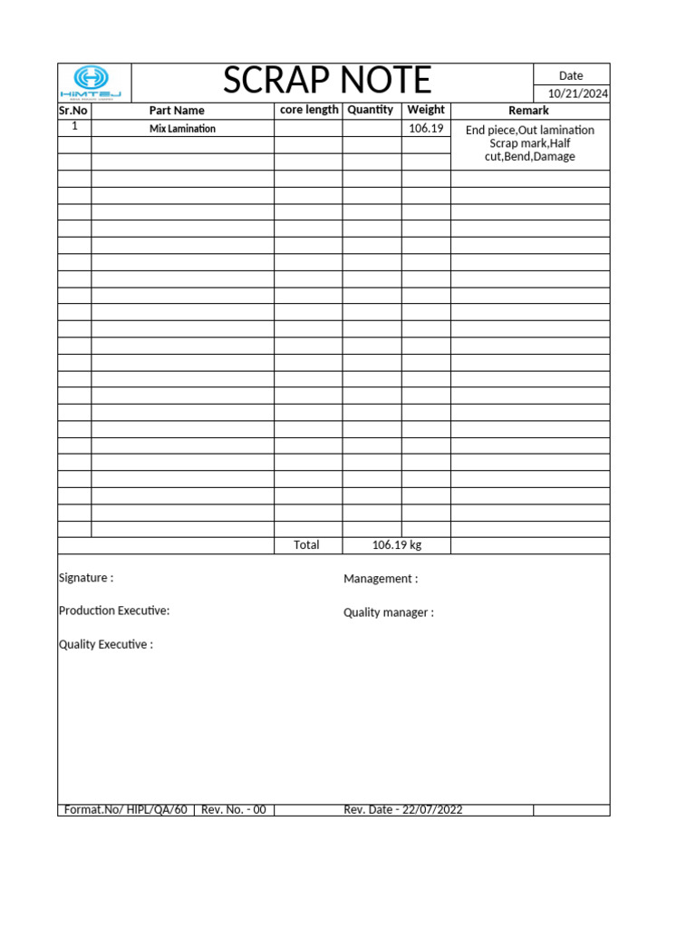 Scrap Note Template for Materials | PDF