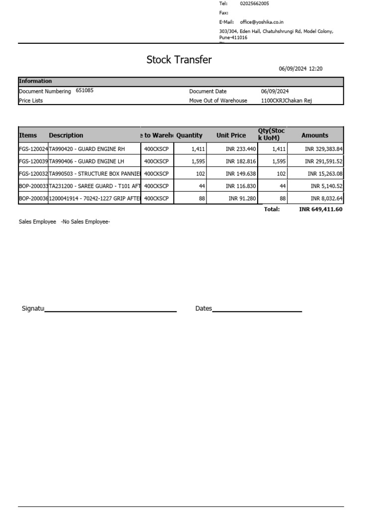 Finished goods scrap document