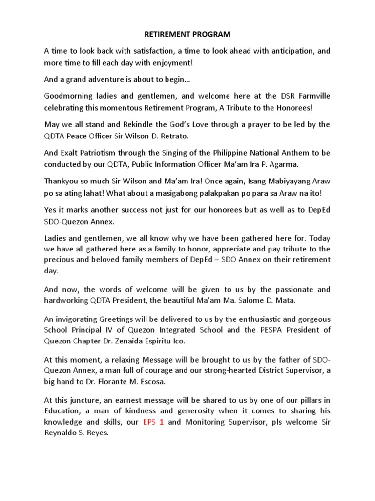 Emcee Script For Retirement Program