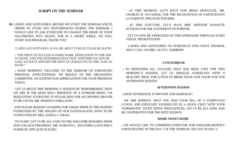 Seminar Emcee Script for Effective Hosting | PDF | Career & Growth ...