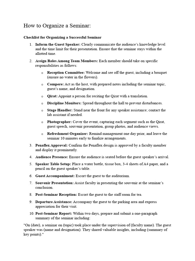 Seminar Organization Checklist Guide | PDF