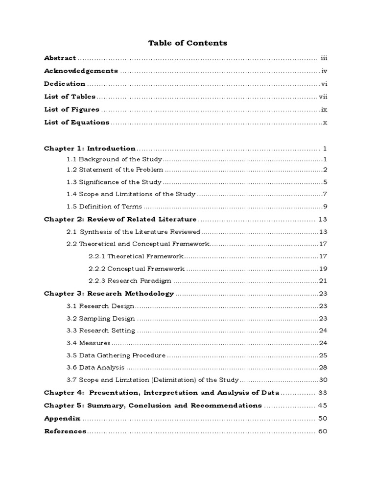 Research Sample Guide- Table of Contents,List of Tables, List of Figure ...