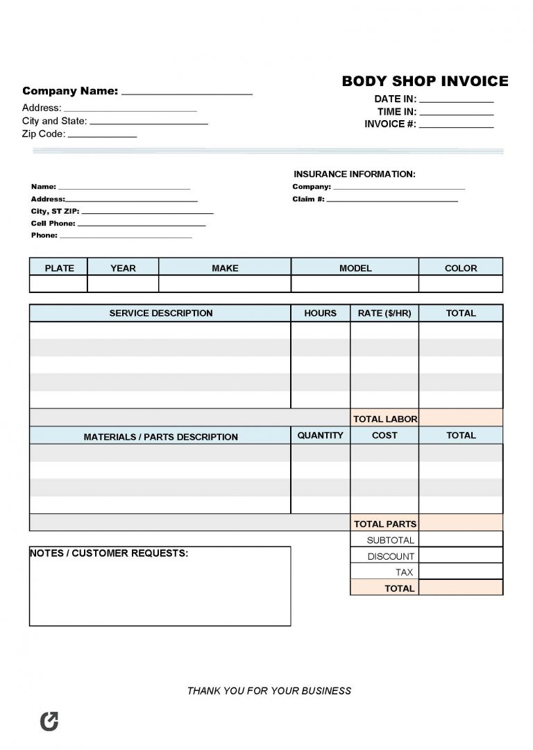 Free Auto Body (Mechanic) Invoice Template - PDF | Word – eForms