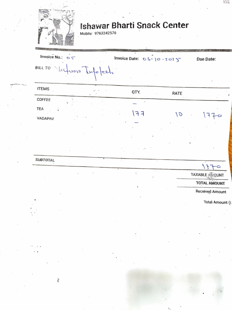Tea Stall Invoice Format | PDF | Business | Technology & Engineering