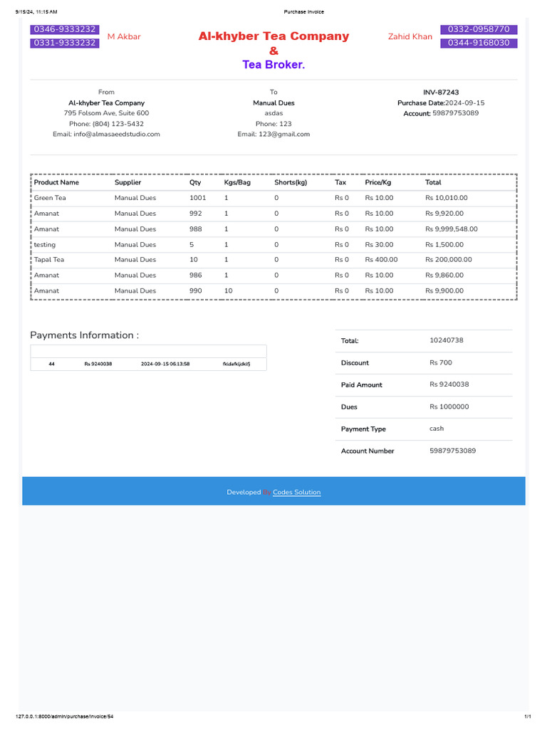 Purchase Invoice for Al-khyber Tea Company | PDF | Invoice