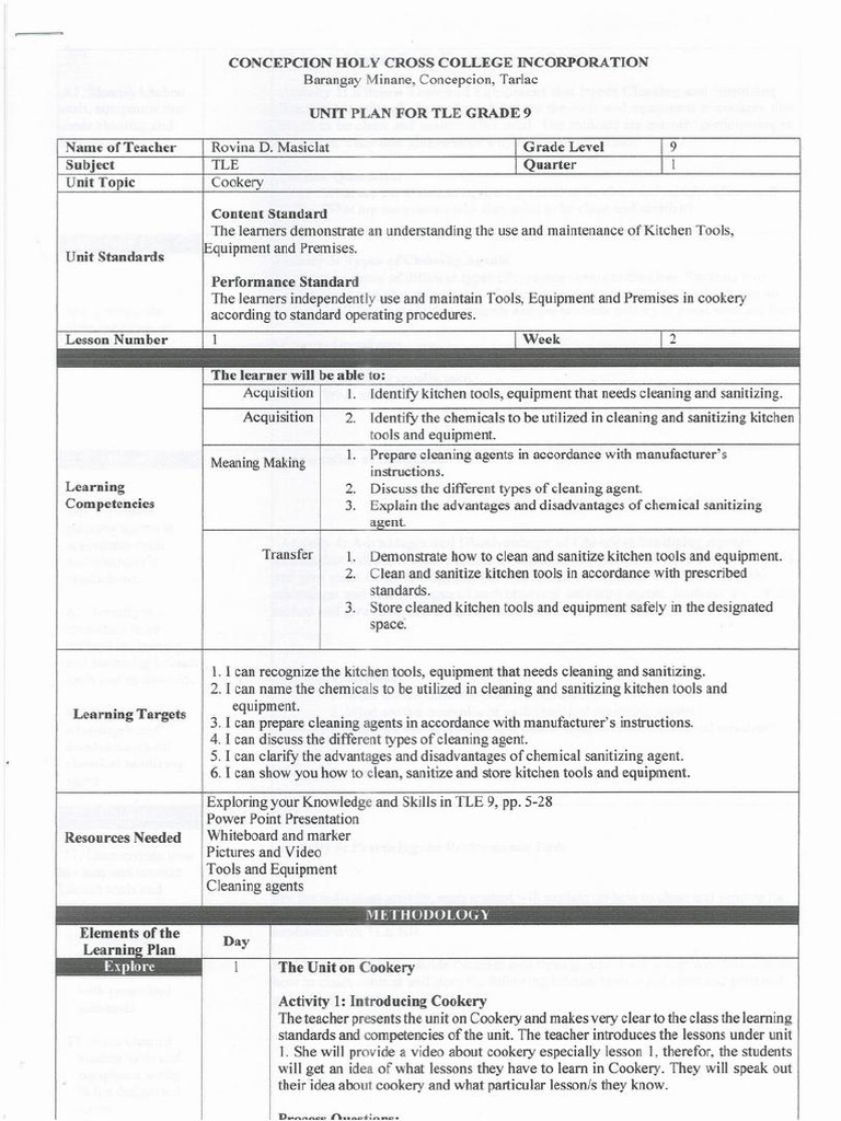 Example Of Detailed Lesson Plan In Tle Cookery - Design Talk
