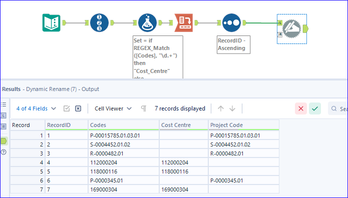 Formula to split accounting codes in one column into 2 columns - Alteryx