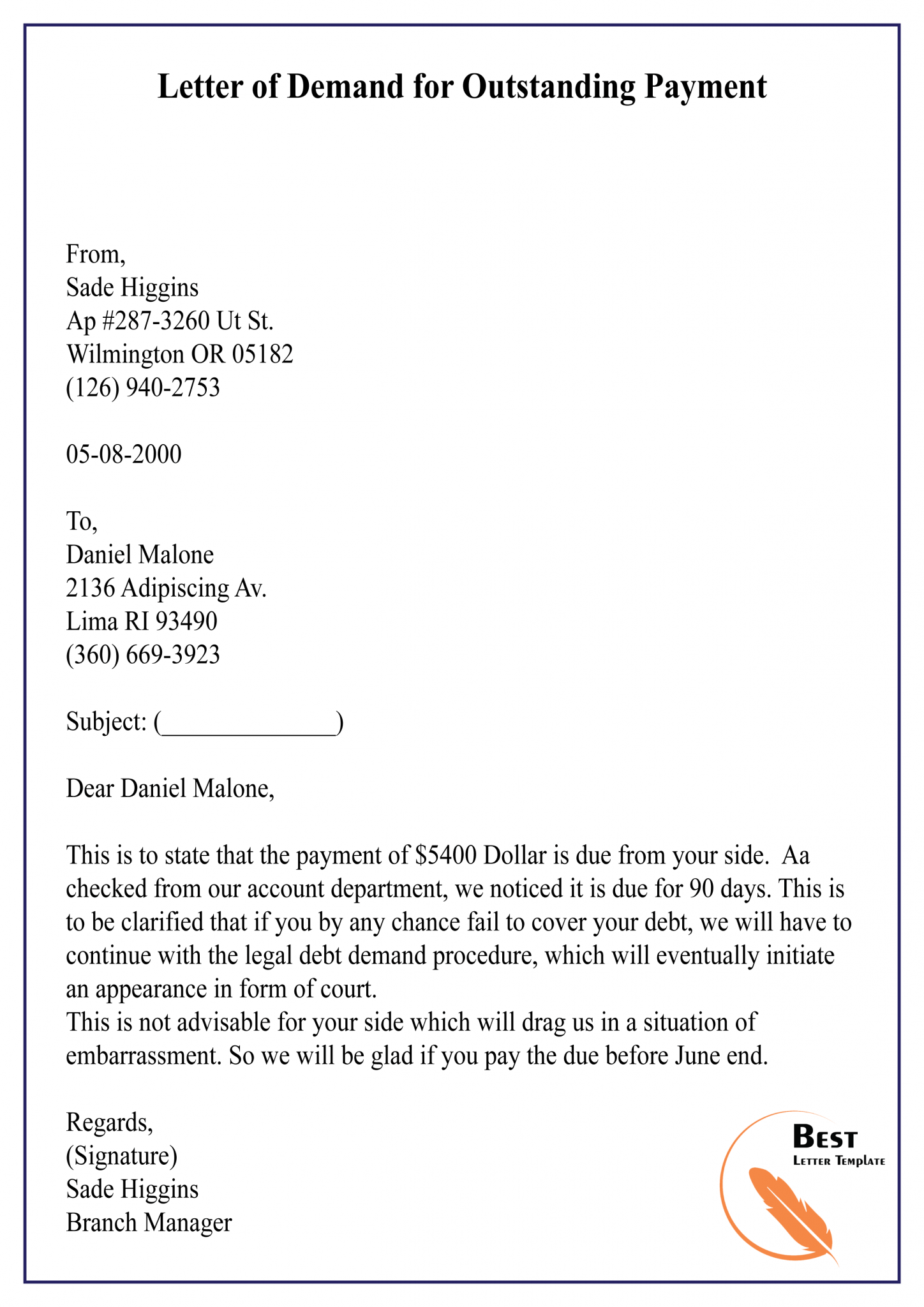 5 Free Demand Letter For Payment Template Sample Examples