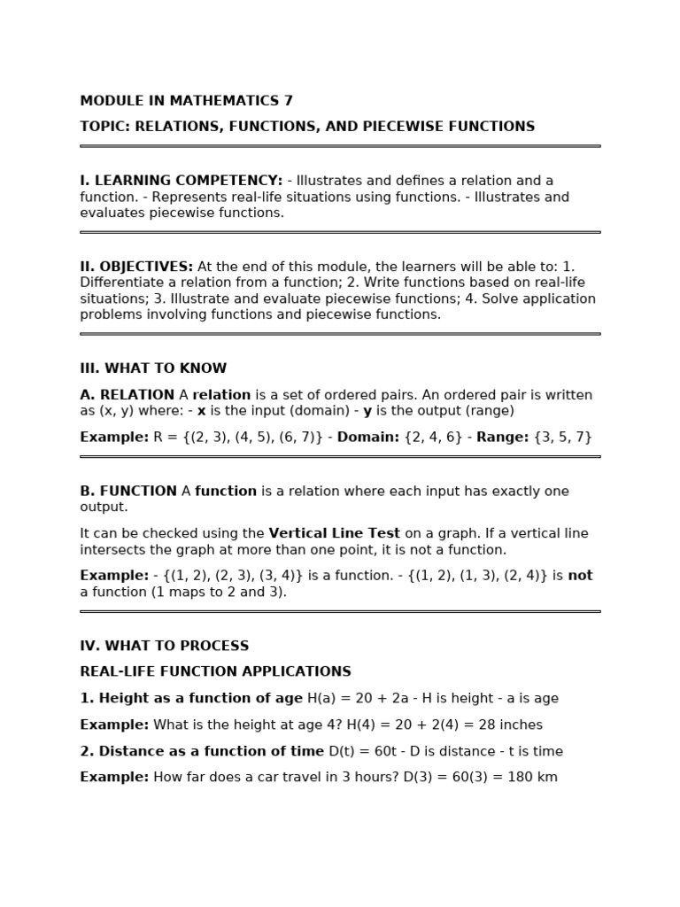 Relations Functions Module | PDF | Function (Mathematics ...