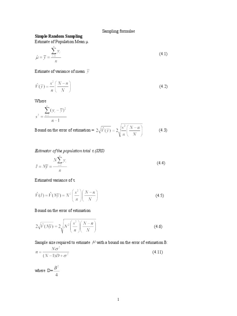 Sampling Formula | PDF | Estimator | Sample Size Determination