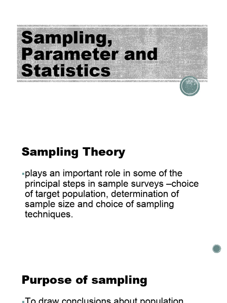 Random Sampling, Parameter and Statistics | PDF | Sampling (Statistics ...