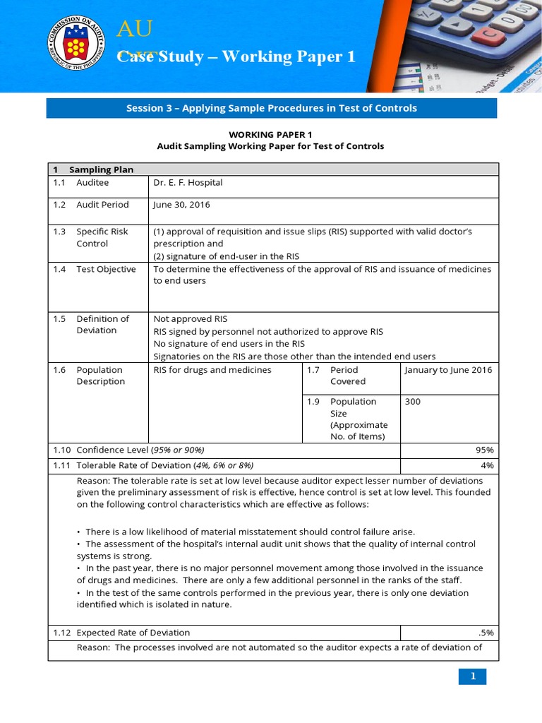 04 WORKING PAPER 1 - Audit Sampling For Test of Controls - Afalla ...