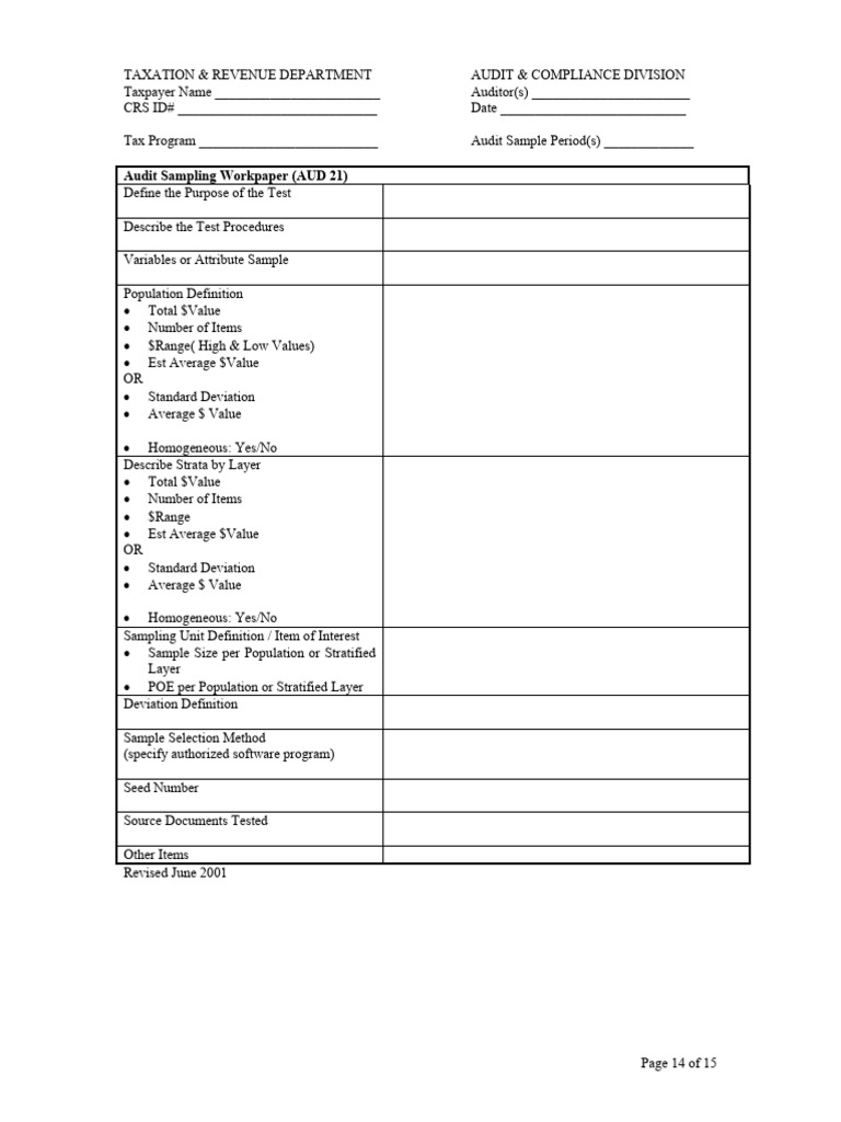 Audit Sampling Workpaper Template | PDF