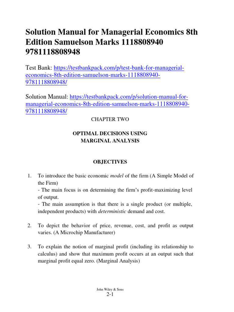 Managerial Economics 7th Edition Samuelson Solutions Manual | PDF