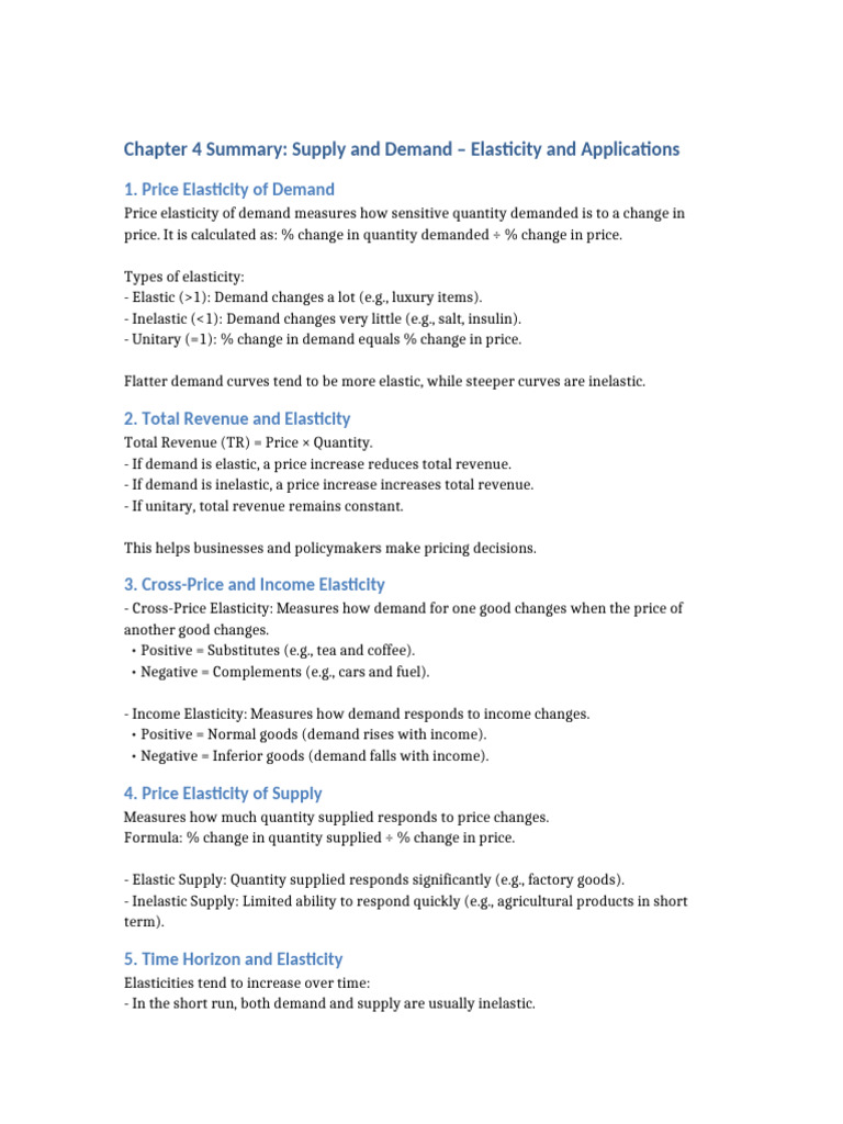 Chapter 4 Summary Elasticity Samuelson | PDF | Elasticity (Economics ...