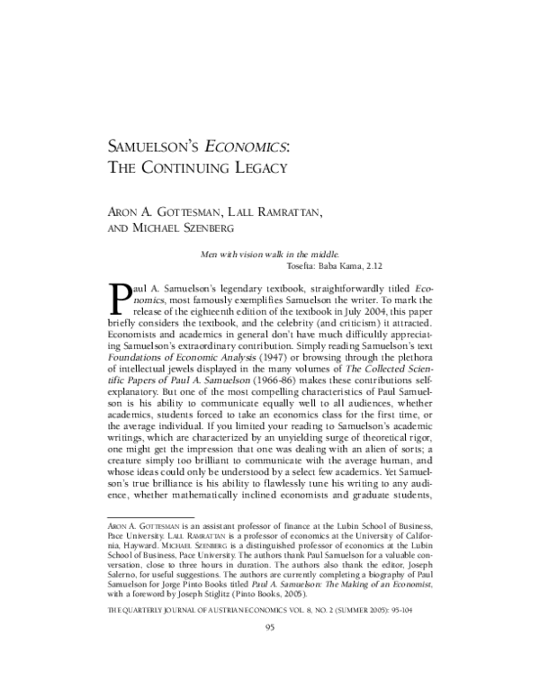 (PDF) Samuelson’s economics: The continuing legacy