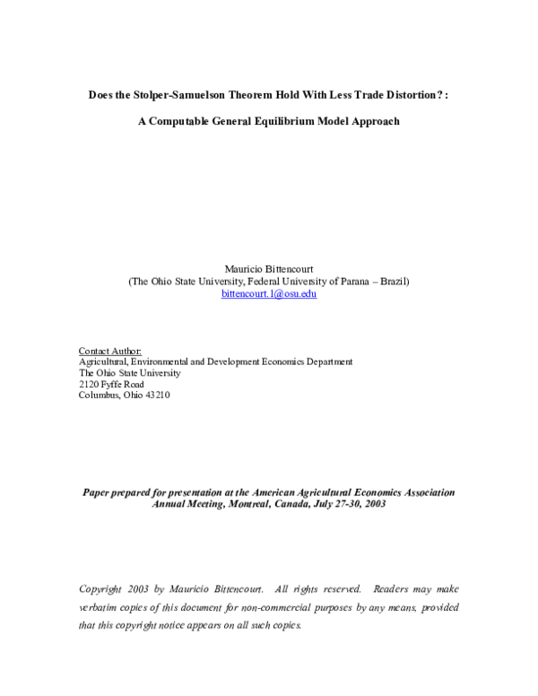 (PDF) A General Equilibrium Re-Appraisal of the Stolper–Samuelson Theorem