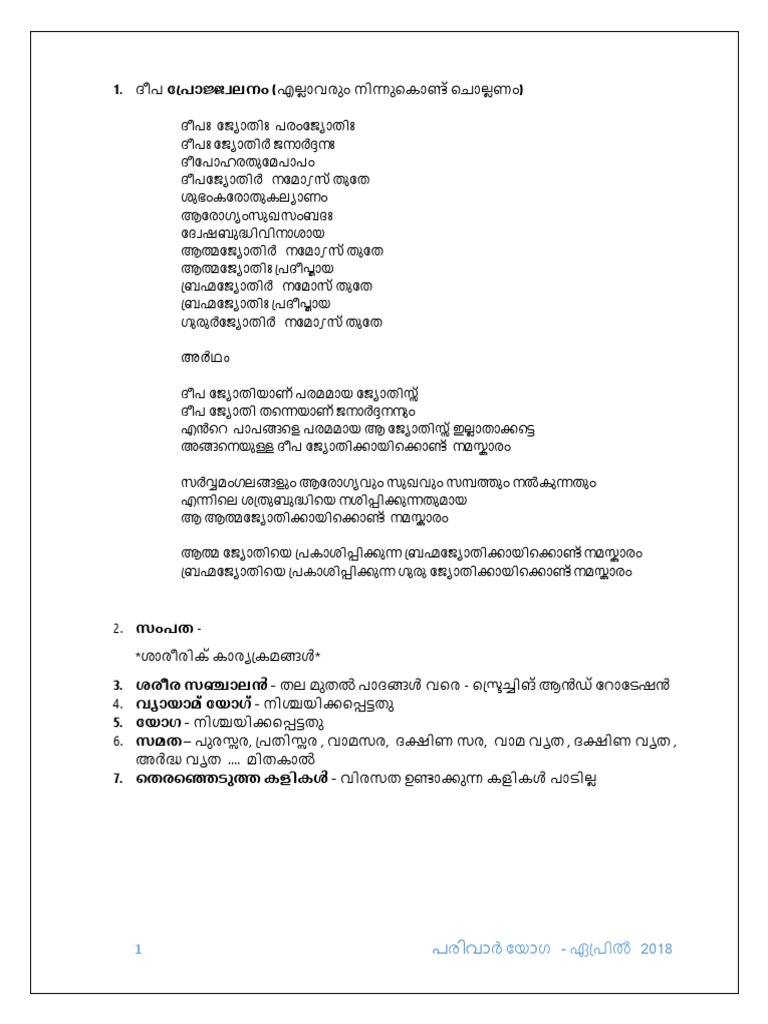 April 2018 Parivar Yog Program | PDF