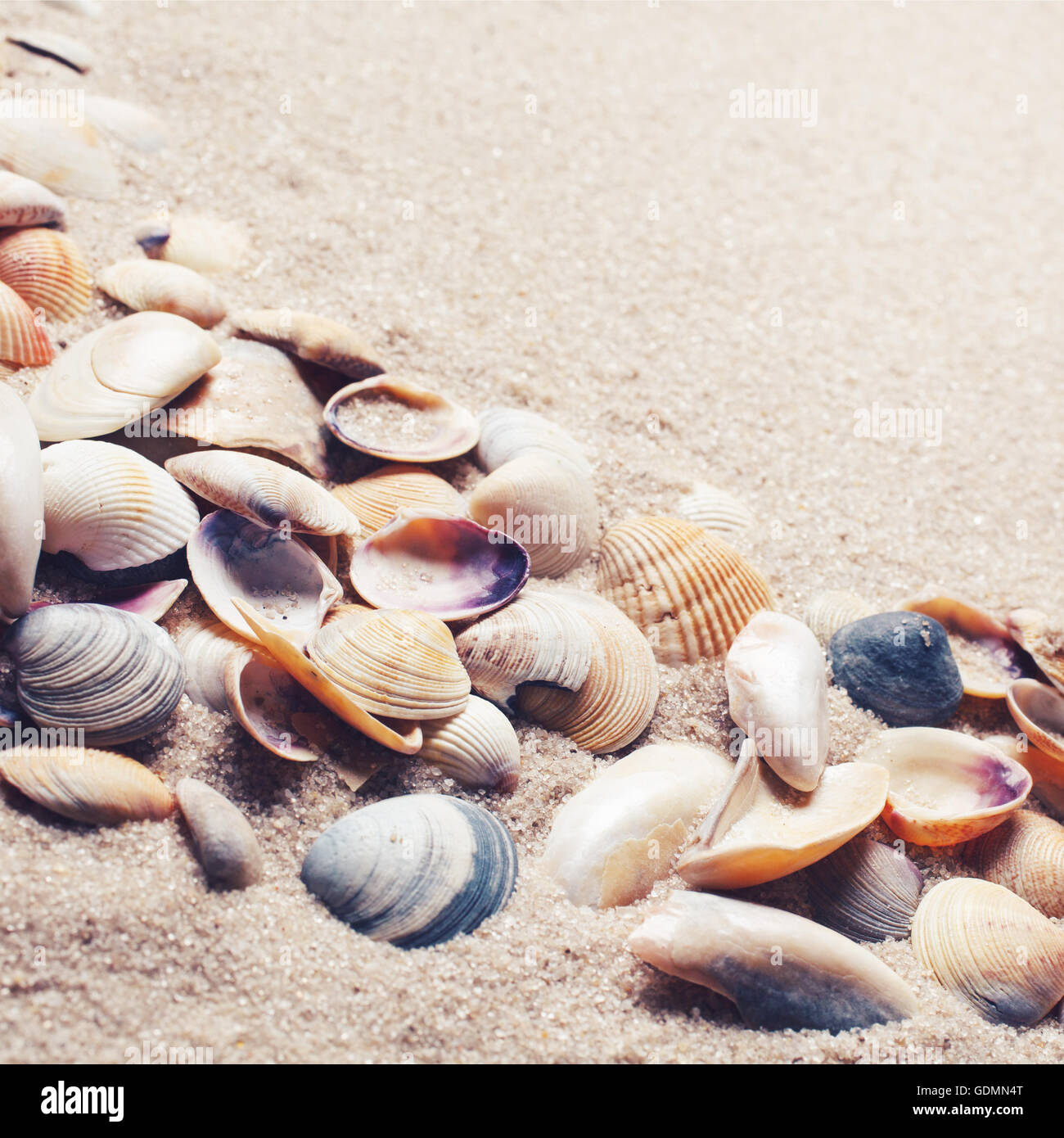 Background of various shell in sand Stock Photo - Alamy