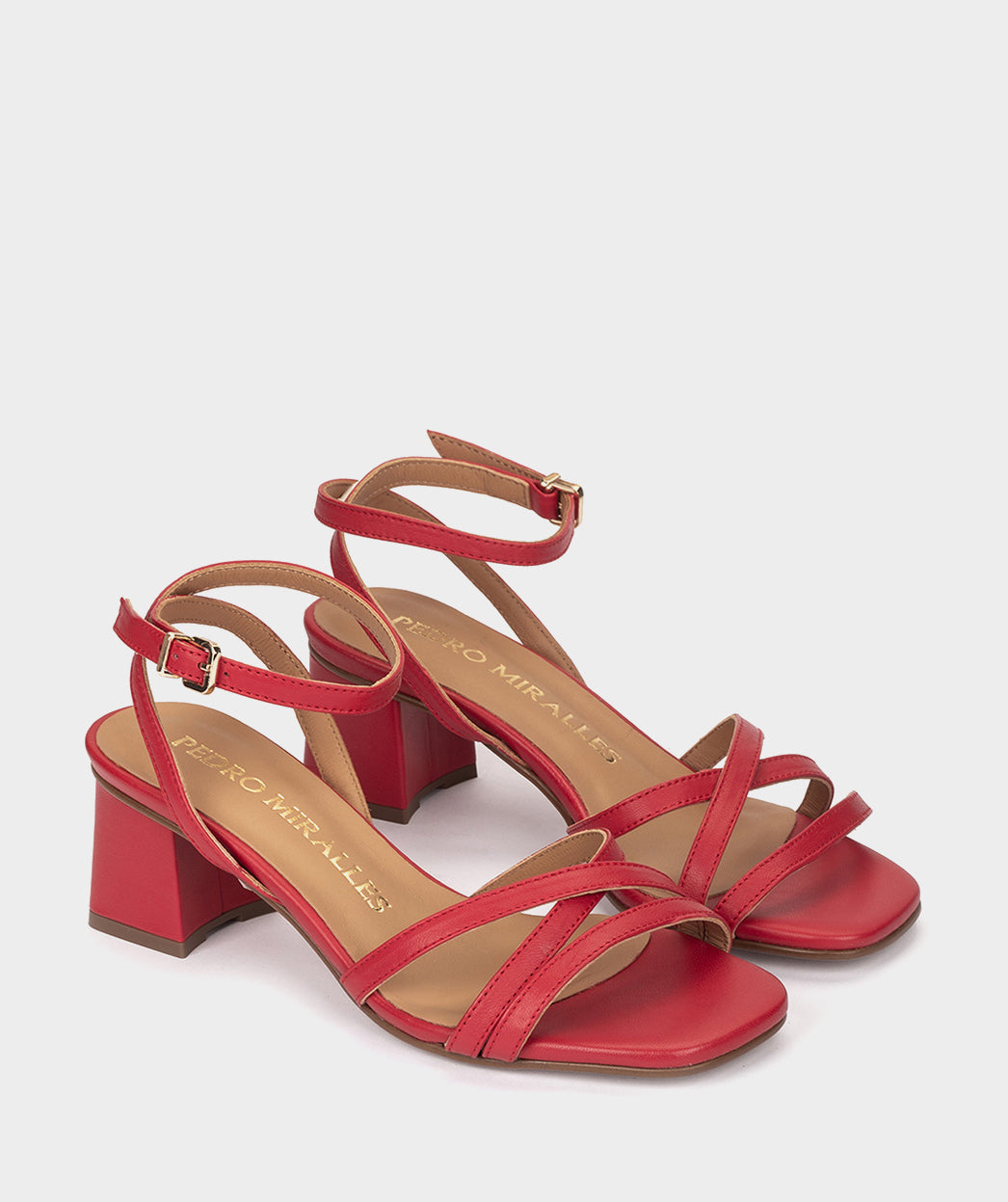 Sandales Ées Rouges À Talon Fin Moyen Et Bout Carré | Chaussures | PLT FR