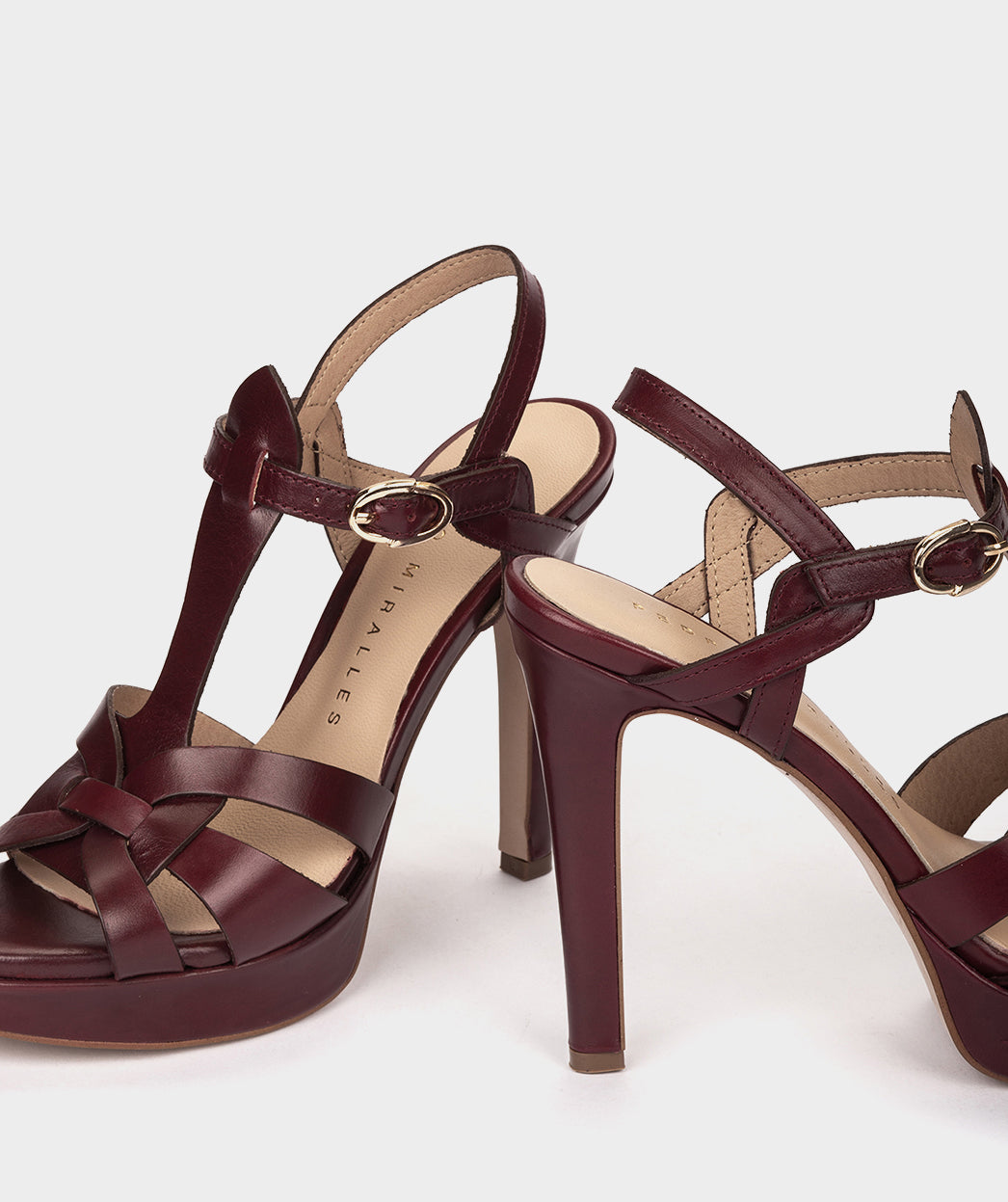 Sandales Ées Rouges À Talon Fin Moyen Et Bout Carré | Chaussures | PLT FR