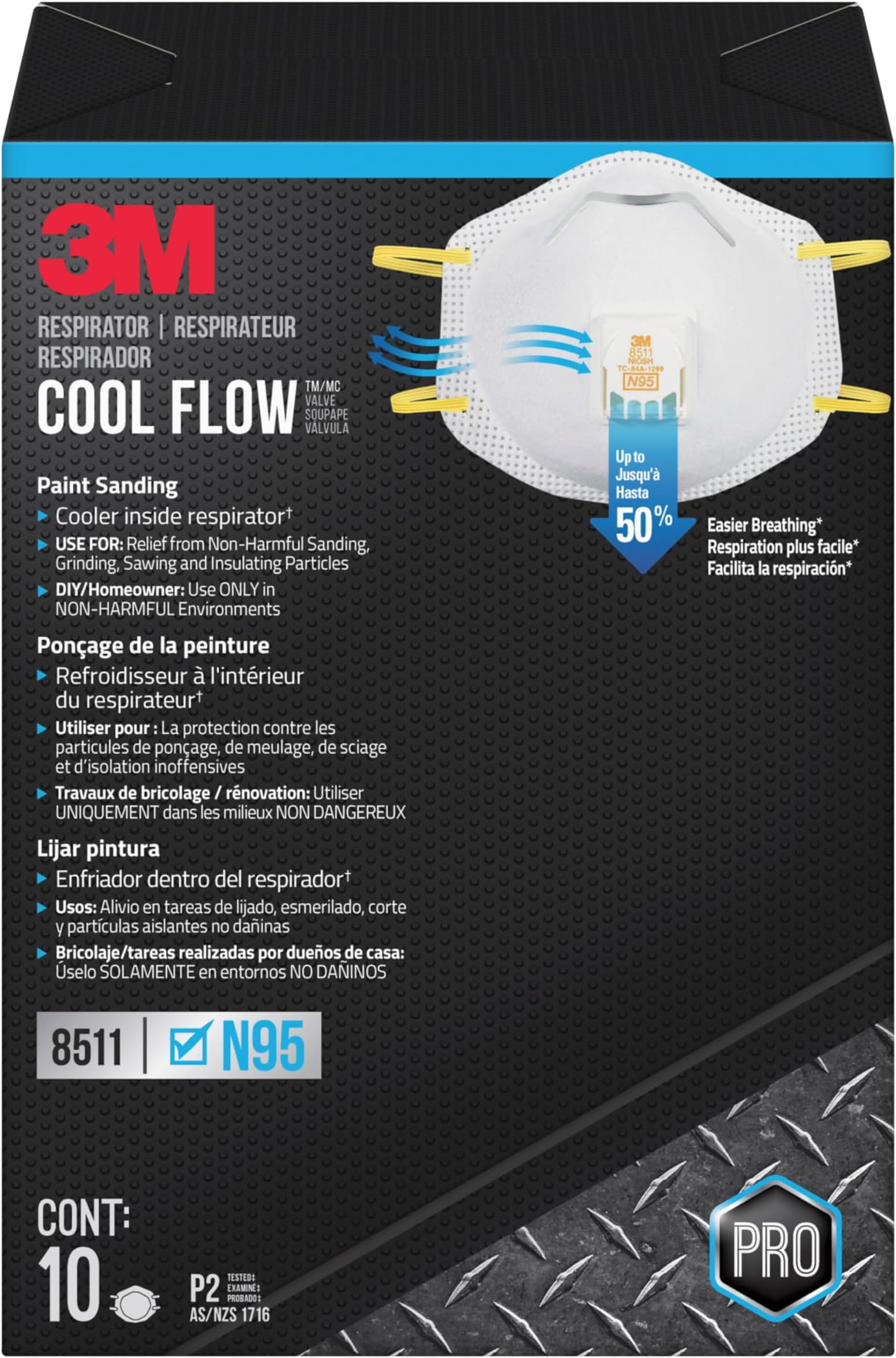 3m Pro Paint Sanding Vented Respirators, 8511, 10 Masks (n95) : Amazon ...