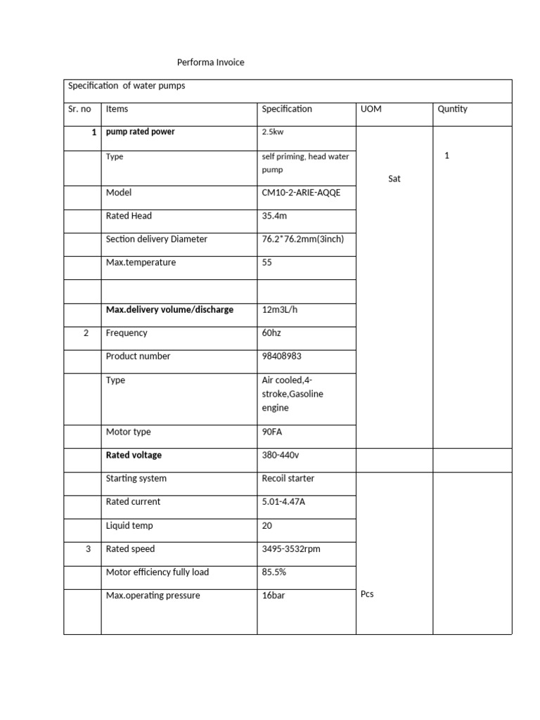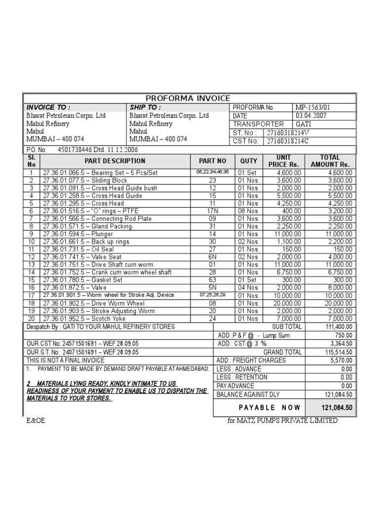 Proforma Invoice | PDF | Pump | Mechanical Engineering