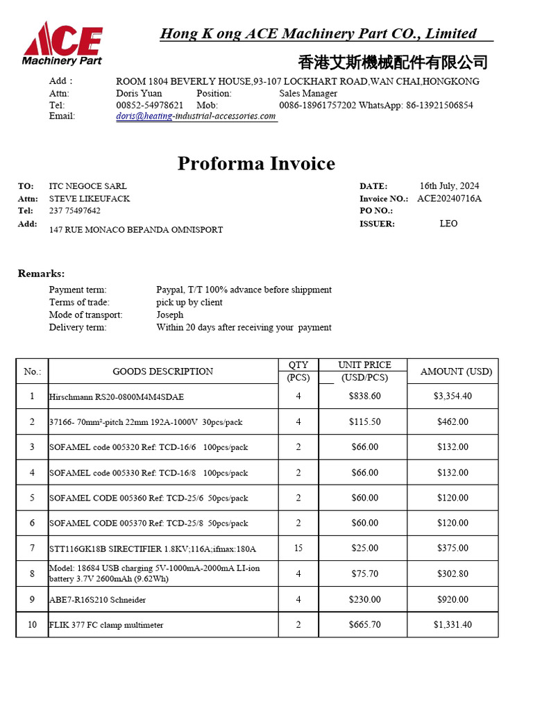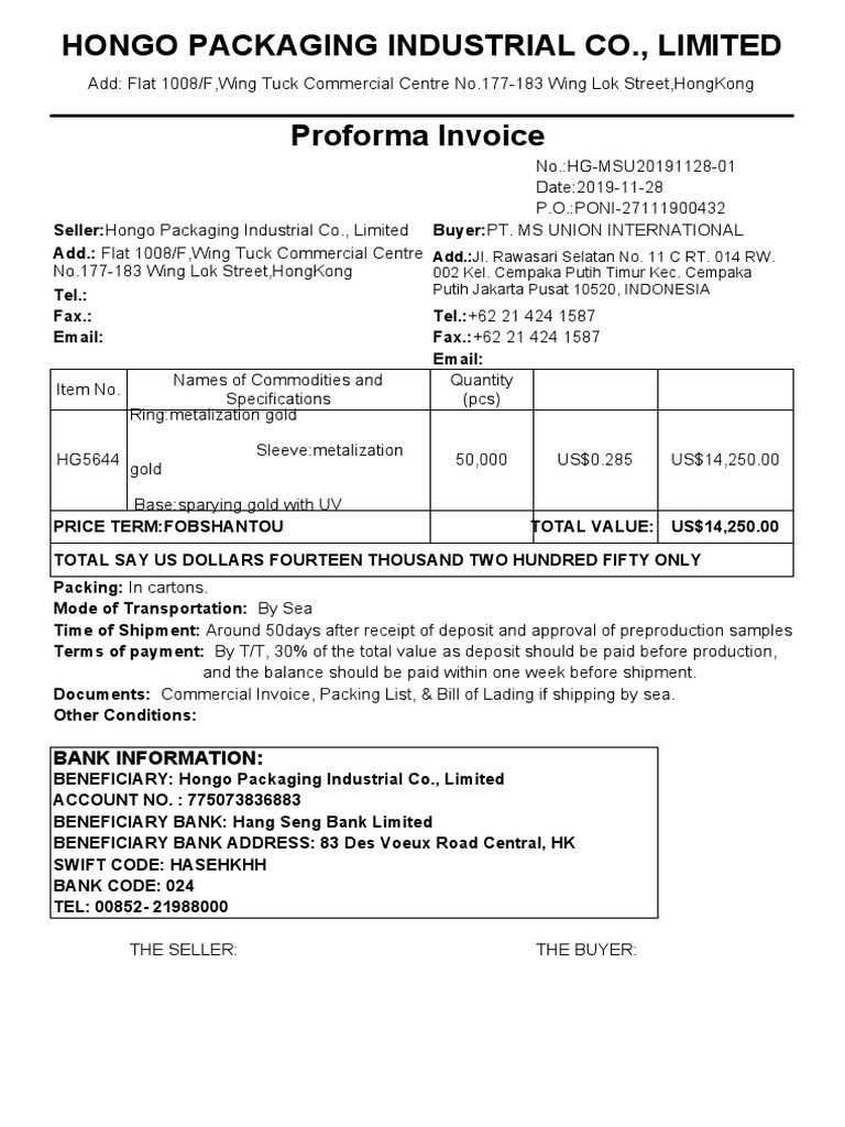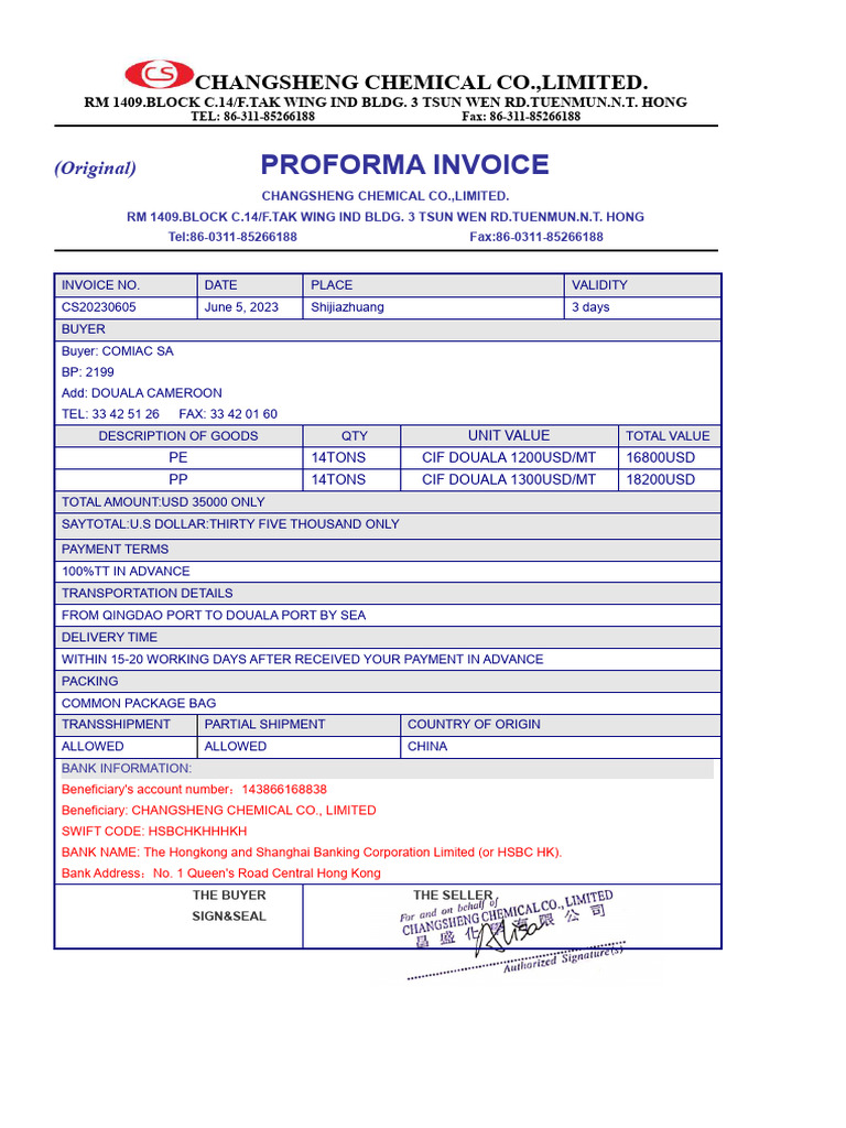 Proforma Invoice: Details As Following (CFR Piraeus /greece Price ...